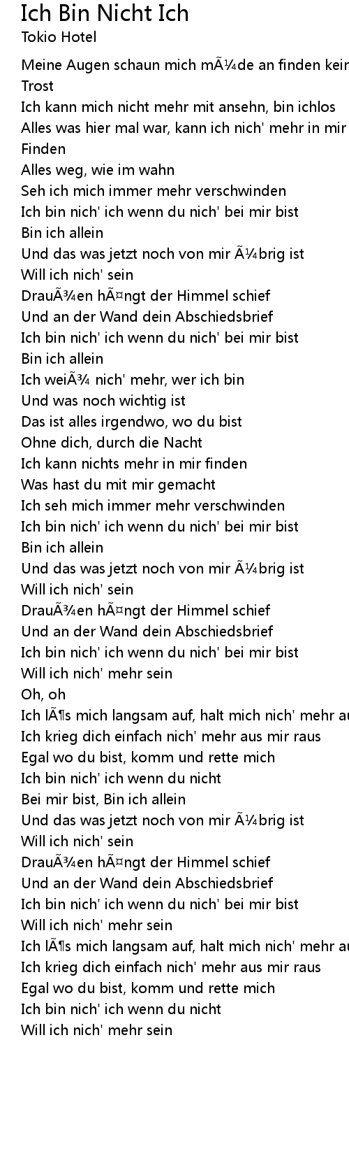 | Song | Ich Bin Nicht Ich |