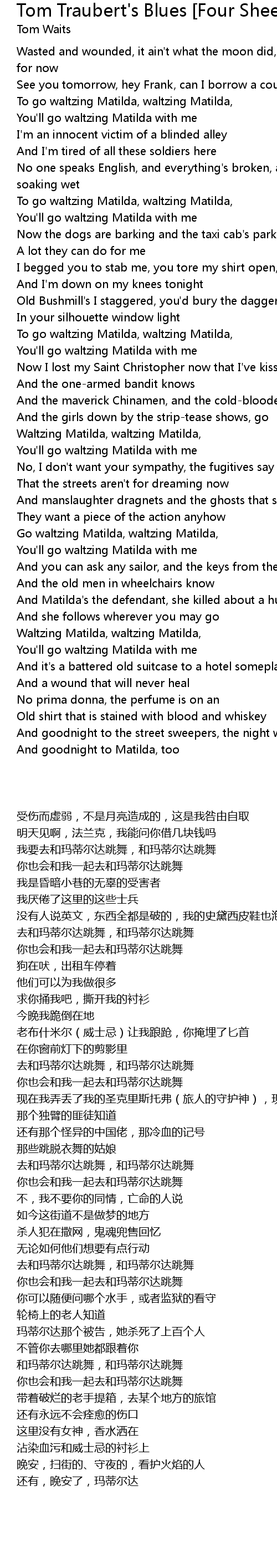 Song Tom Traubert's Blues [Four Sheets To The Wind In Copenhagen]
