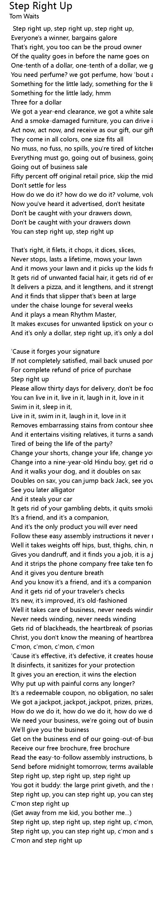 Step right up, step right up, step right up, c'mon, c'mon, c'mon, c'mon, c'mon |