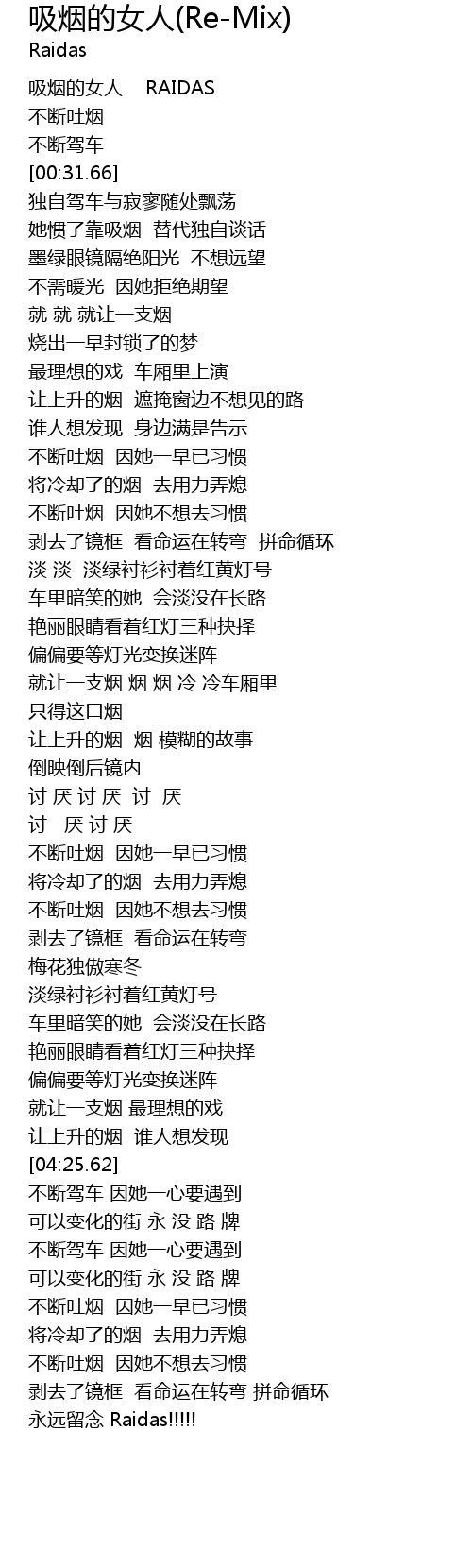 | [00:-0.50] | 吸烟的女人 RAIDAS |