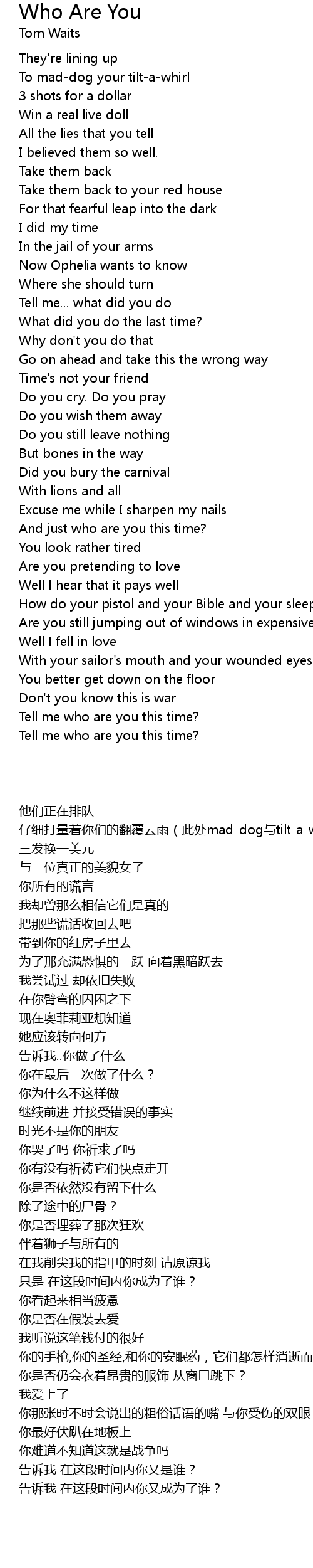 Tell me who are you this time? |