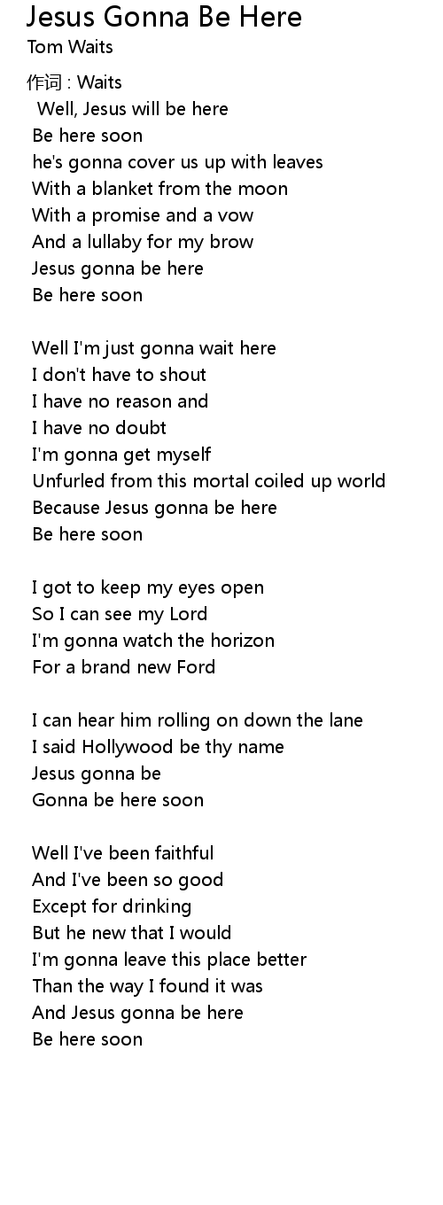 | Because Jesus gonna be here | |