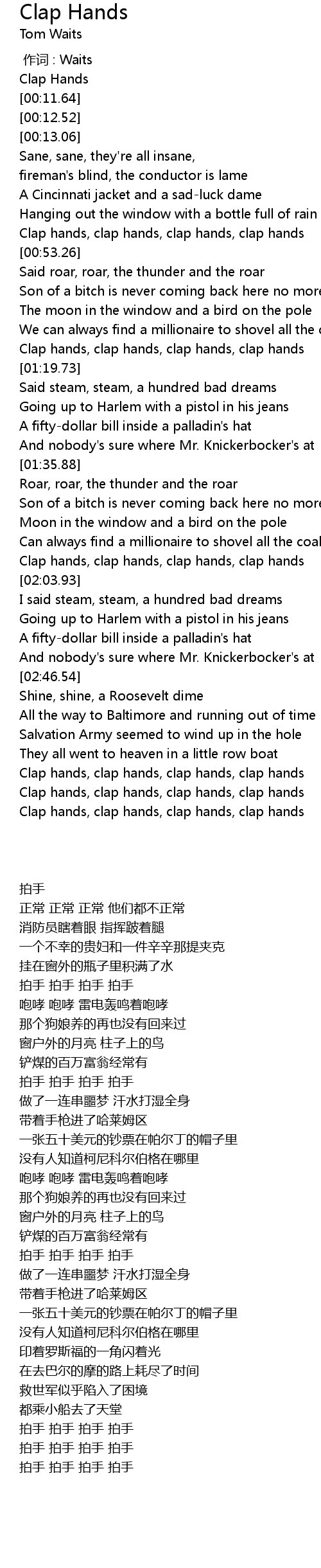 | [01:51.33] | Clap hands, clap hands, clap hands, clap hands |