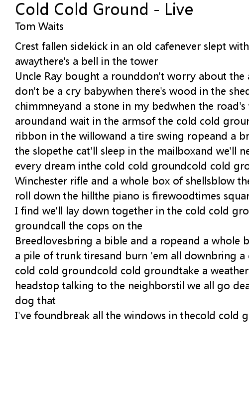 I find we'll lay down together in the cold cold groundcold cold groundcold cold groundcall the cops on the |