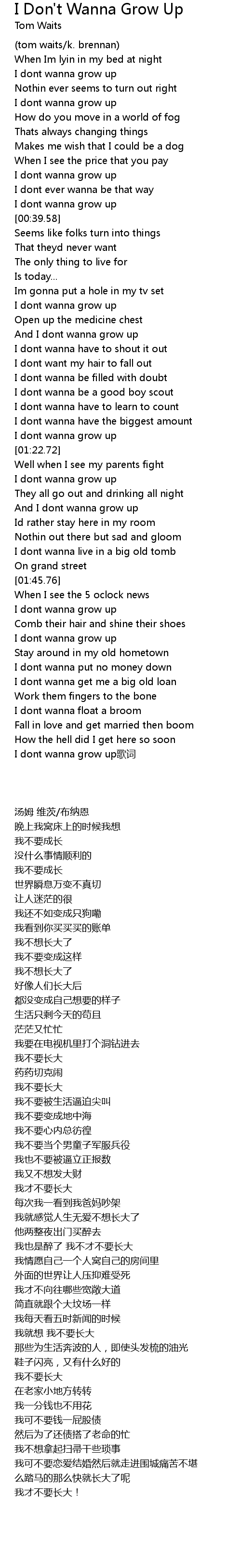 | [02:17.09] | I dont wanna grow up gē cí |