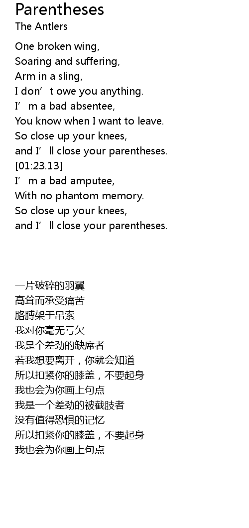| [01:21.54] | and I' ll close your parentheses. |
