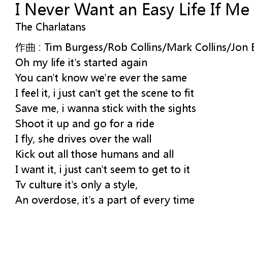 | Song | I Never Want an Easy Life If Me and He Were Ever to Get There |