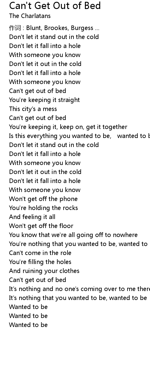 | Song | Can't Get Out of Bed |