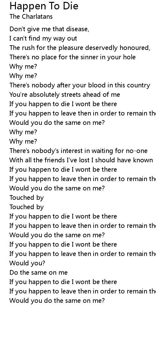 If you happen to die I wont be there |