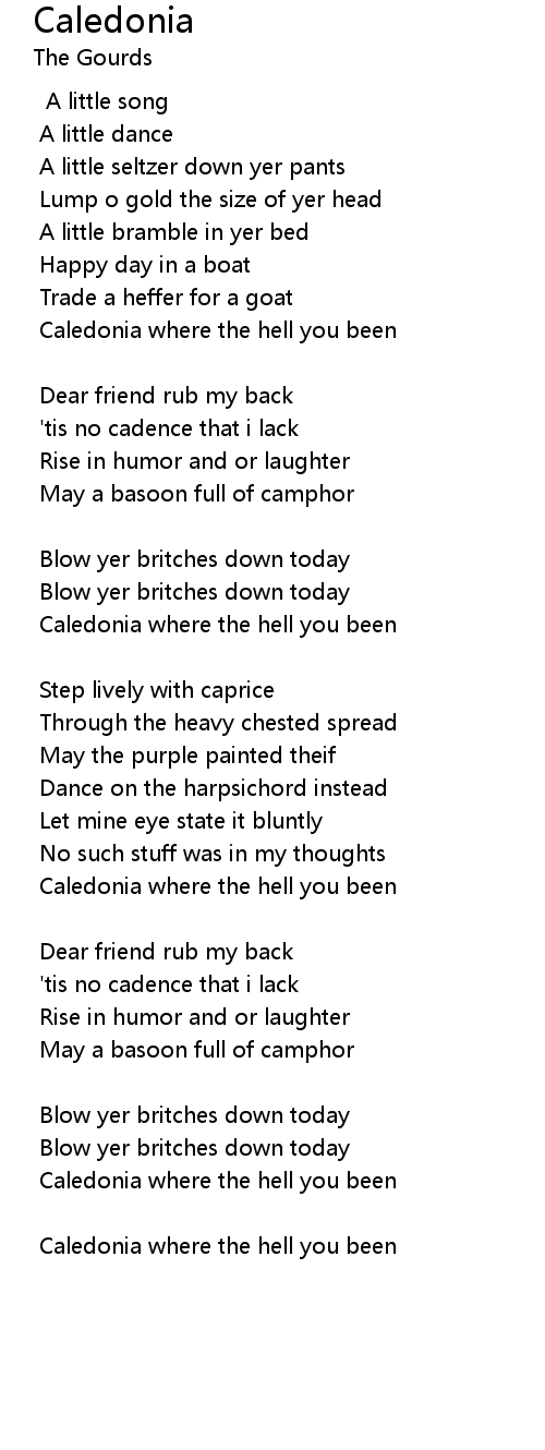 Caledonia where the hell you been |