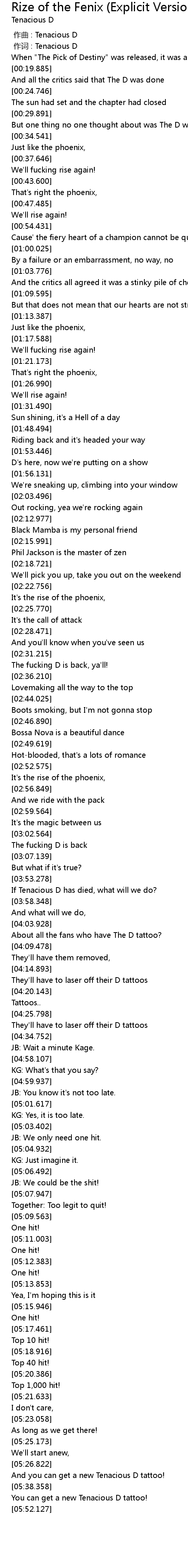 | [00:01.00] | 作词 : Tenacious D |