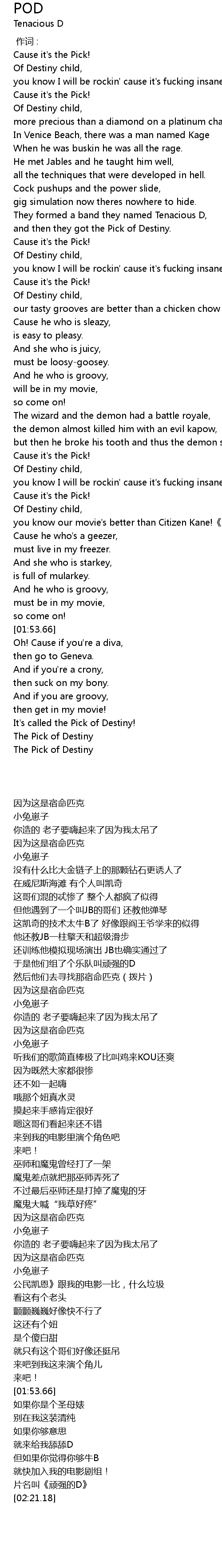 | [00:41.69] | and then they got the Pick of Destiny. |