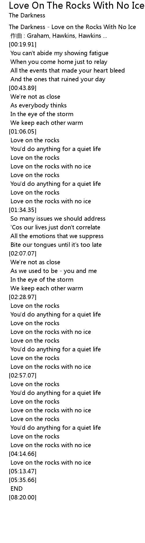 | [00:00] | The Darkness Love on the Rocks With No Ice |