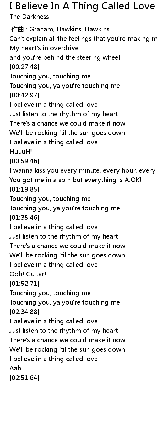 | [00:45.55] | I believe in a thing called love |