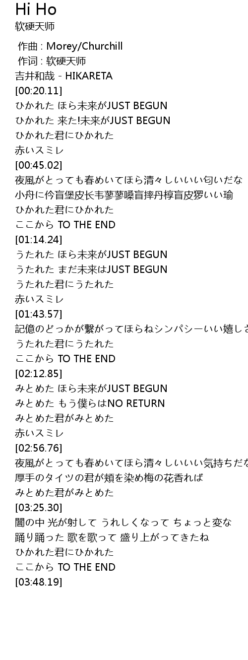 | [00:22.11] | ひかれた ほら未来がJUST BEGUN |