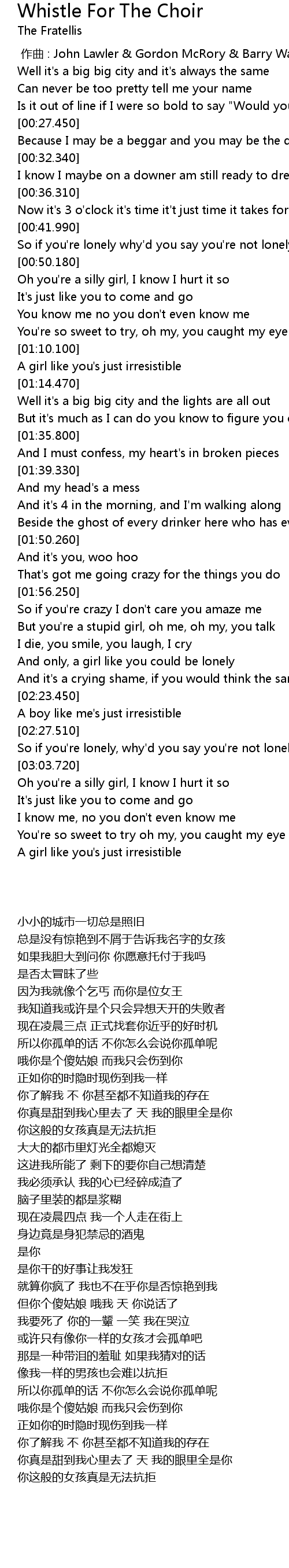 | [03:23.130] | A girl like you' s just irresistible |