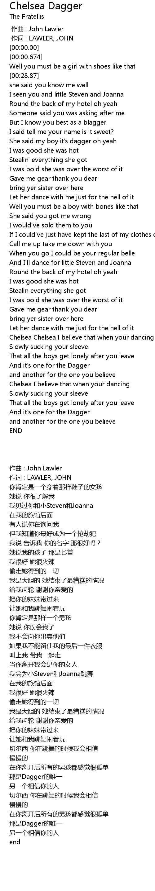 | [01:11.25] | She said my boy it's dagger oh yeah |