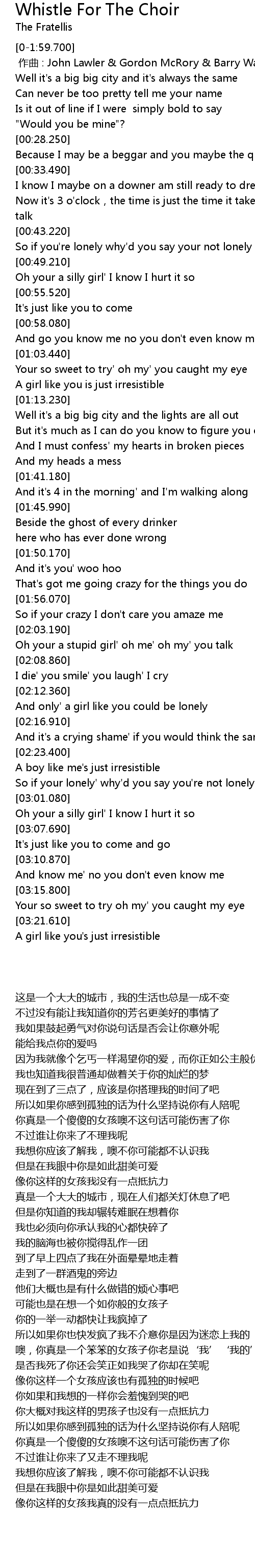| [01:42.930] | And it' s 4 in the morning' and I' m walking along |