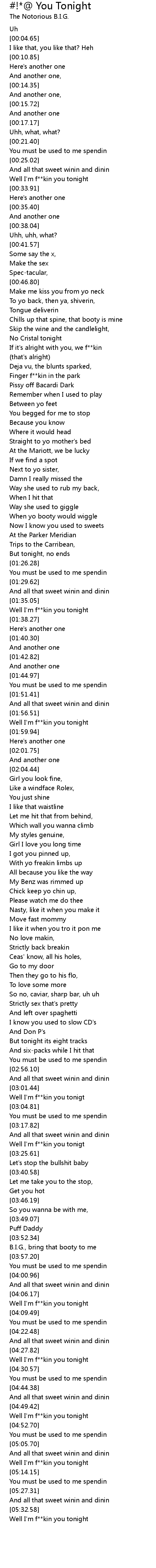 Well I'm f**kin you tonigt |