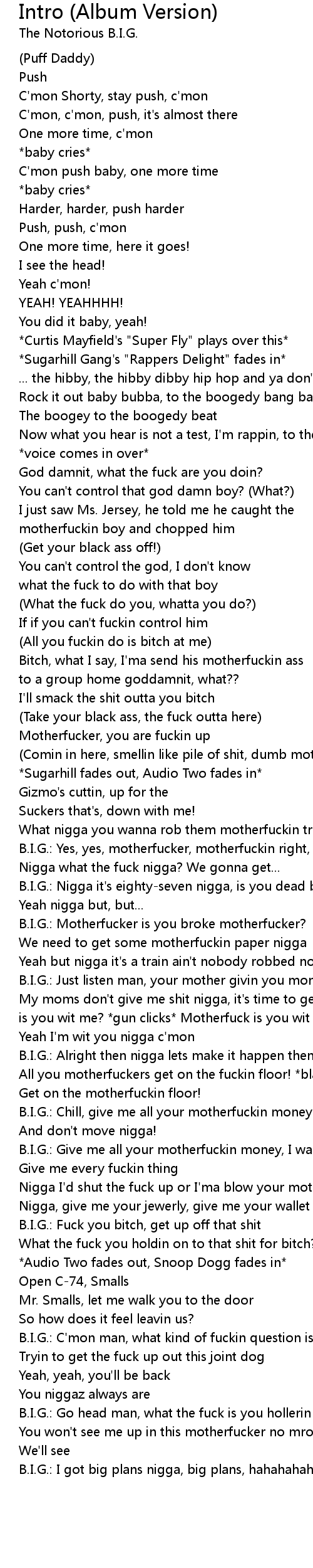 B.I.G.: Yes, yes, motherfucker, motherfuckin right, nigga yes |