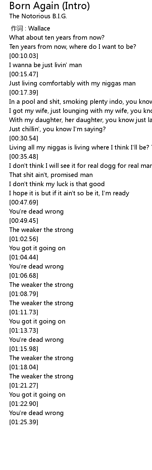 | [00:31.22] | Living all my niggas is living where I think I' ll be? Ten years |