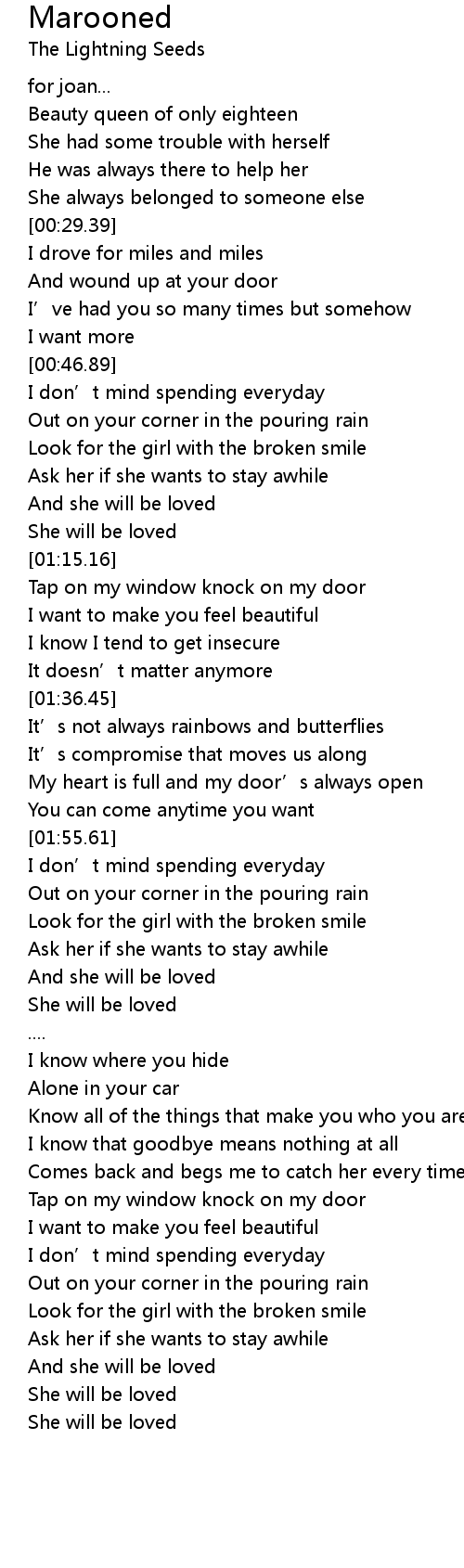 | [02:11.08] | Ask her if she wants to stay awhile |