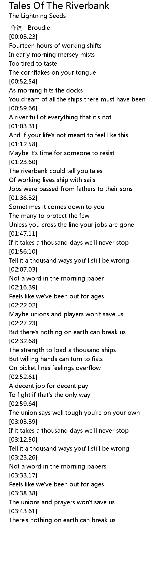 | [02:49.23] | On picket lines feelings overflow |