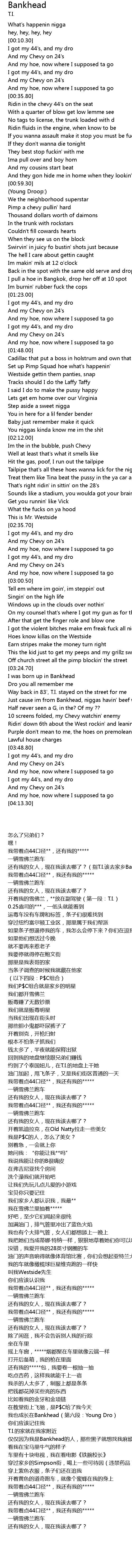 | [02:32.66] | What the fucks on ya hood |