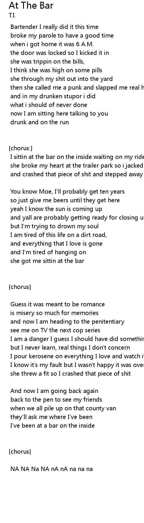 I sittin at the bar on the inside waiting on my ride on the outside |