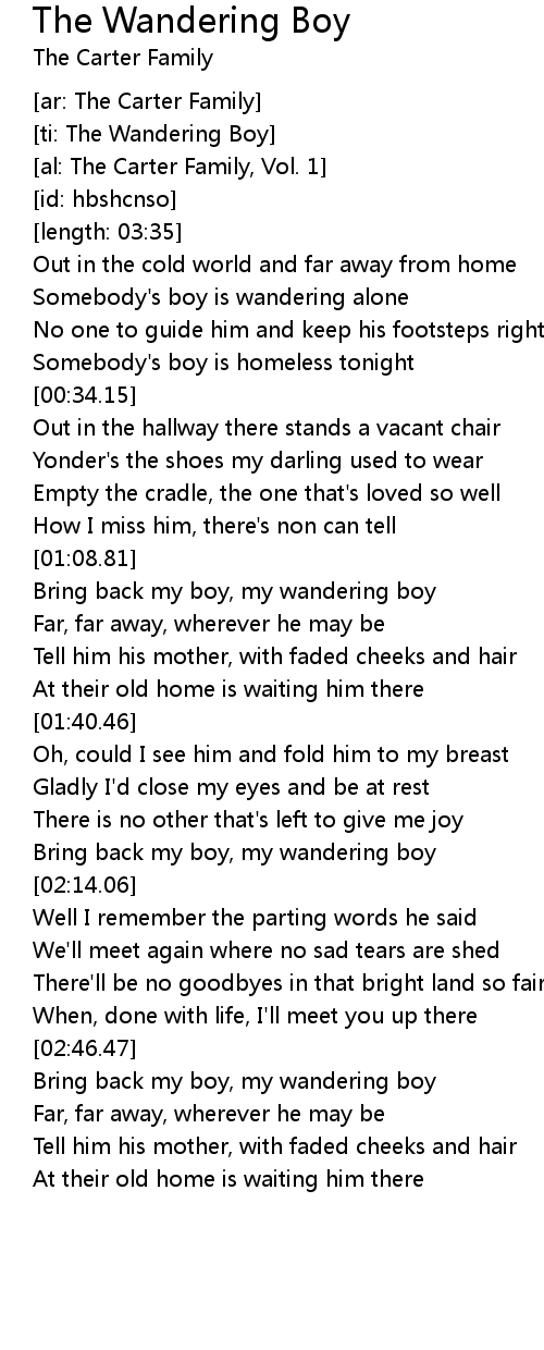 [03:02.06] Tell him his mother, with faded cheeks and hair