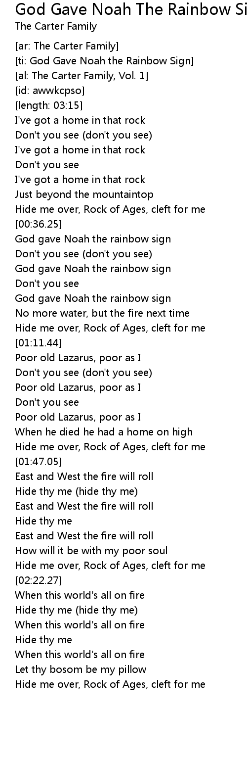 [01:07.11] Hide me over, Rock of Ages, cleft for me