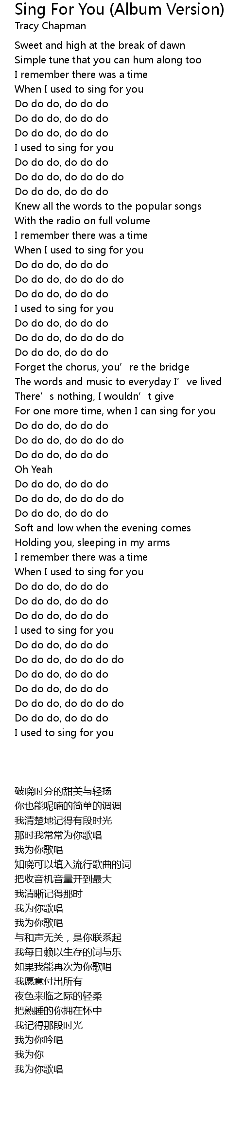 | [00:48.389] | When I used to sing for you |