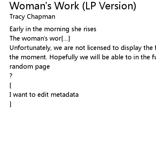 | Unfortunately, we are not licensed to display the full lyrics for this song at the moment. Hopefully we will be able to in the future. Until then, how about a | |
