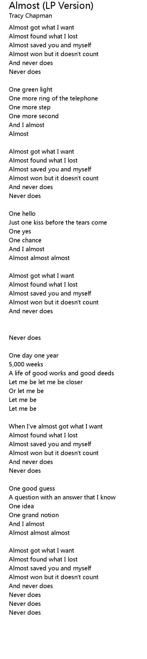 Almost got what I want |