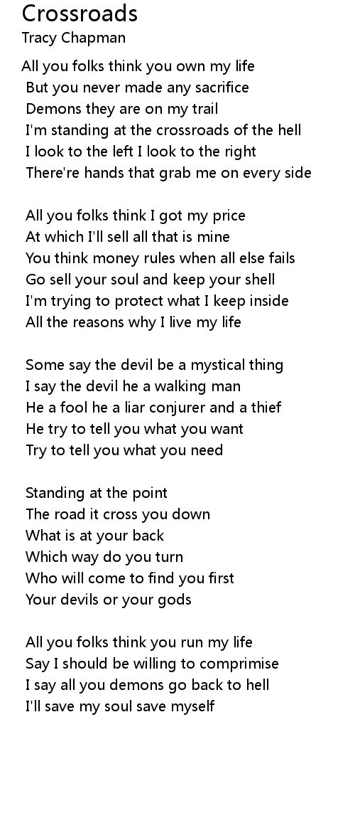 I'm standing at the crossroads of the hell |