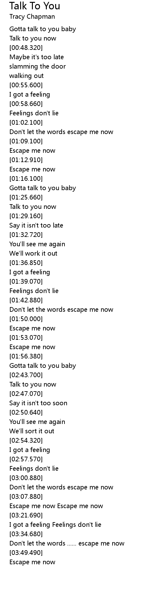 Don't let the words ...... escape me now |