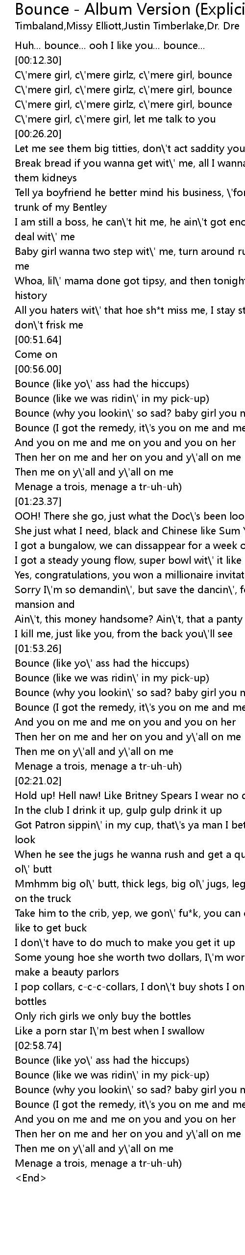 Bounce (why you lookin\' so sad? baby girl you need to cheer up) |