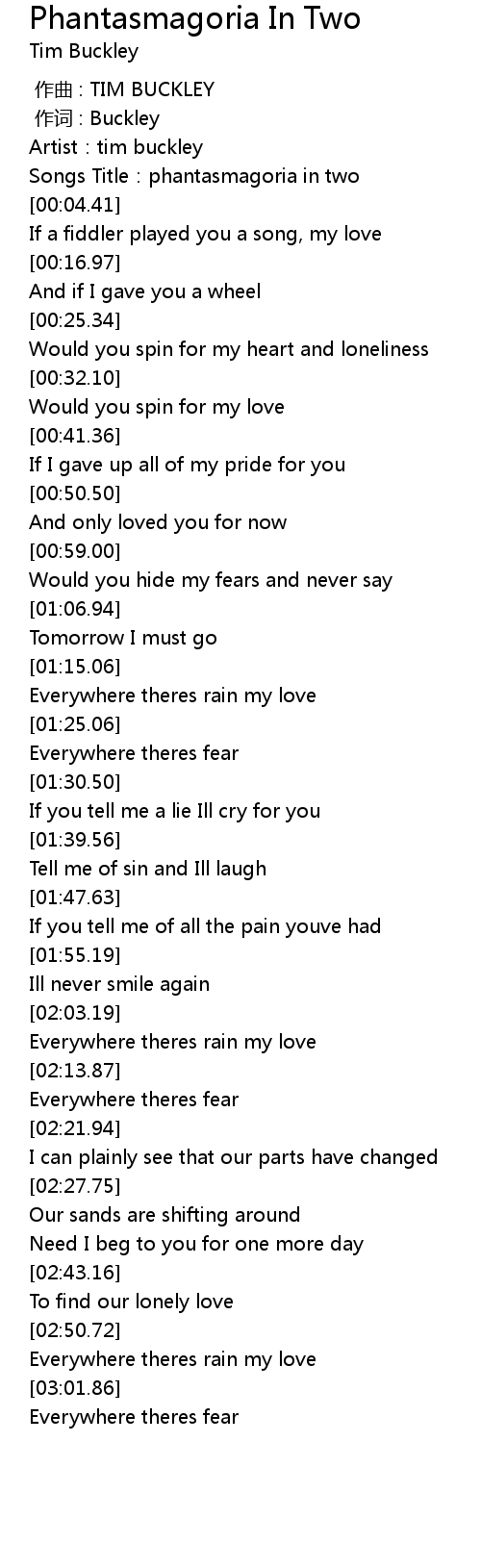 | [00:00.00] | zuo qu : TIM BUCKLEY |