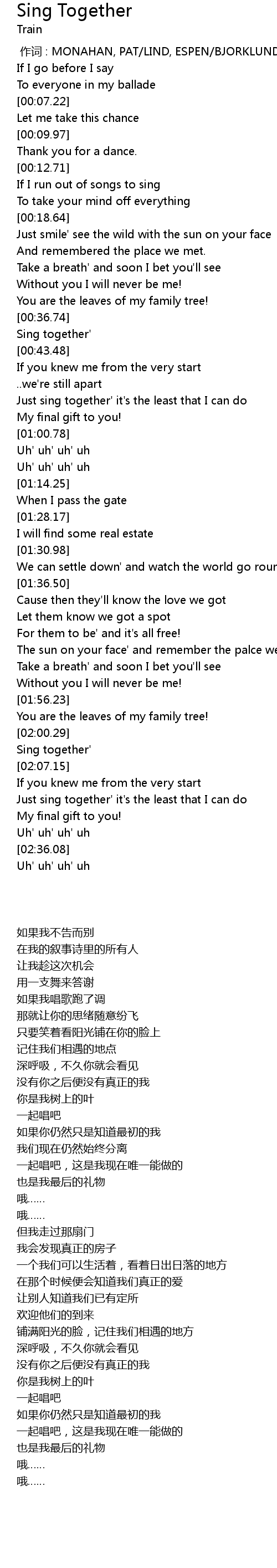 | [00:50.54] | Just sing together' it's the least that I can do |