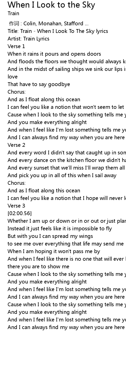| [00:00.90] | Title: Train - When I Look To The Sky lyrics |