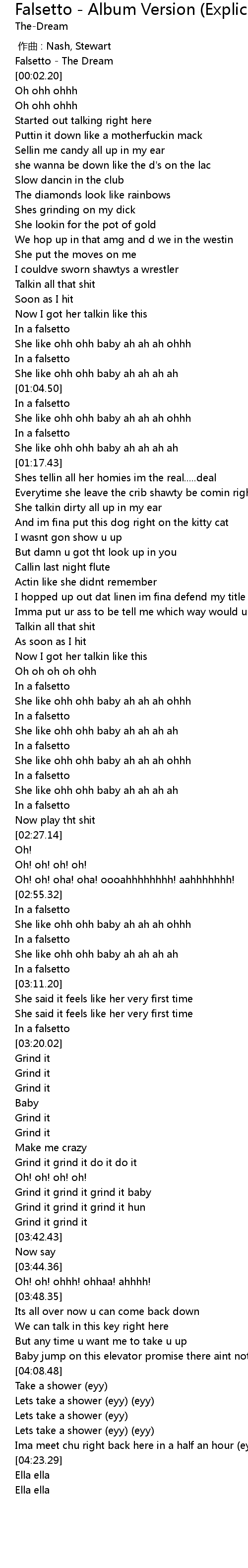 | [02:20.16] | She like ohh ohh baby ah ah ah ah |
