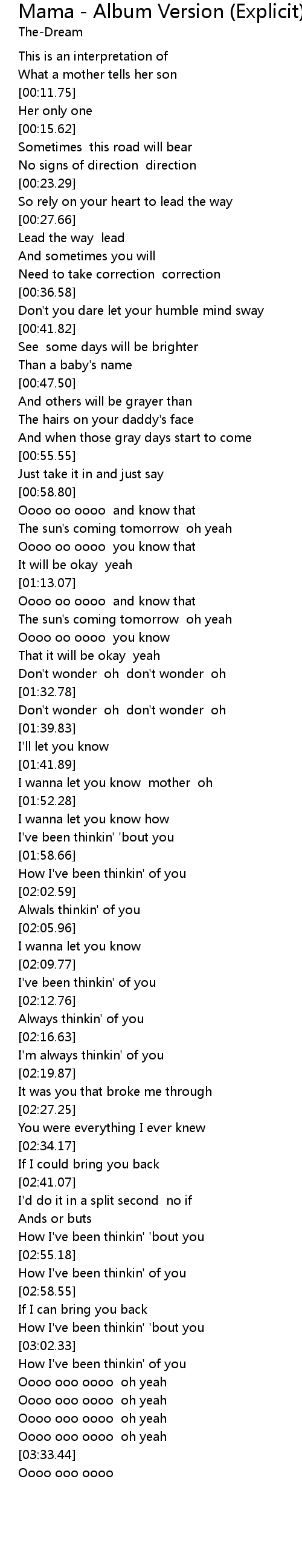 | [01:43.64] | I wanna let you know mother oh |