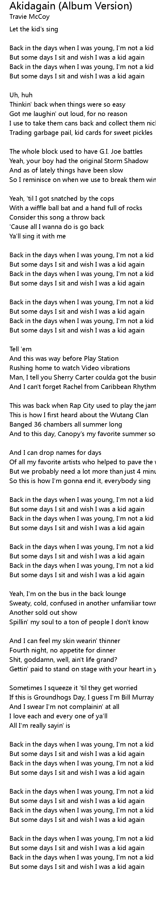 Back in the days when I was young, I'm not a kid anymore |