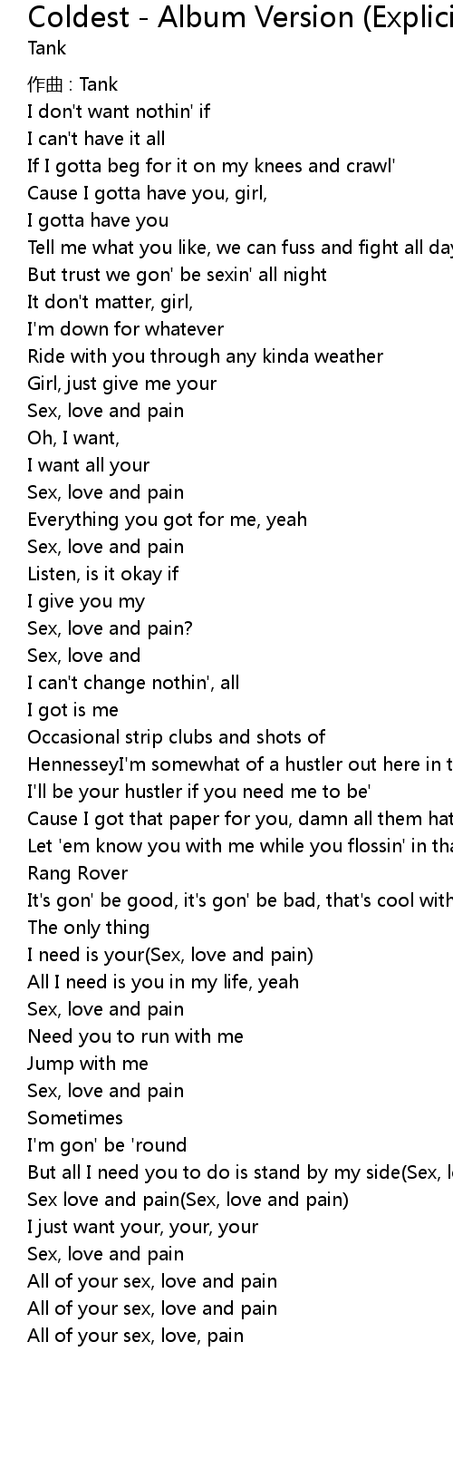 | But all I need you to do is stand by my side Sex, love and pain | |