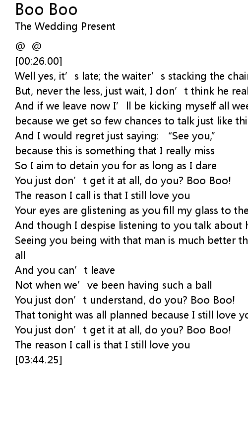 | [02:56.90] | You just don' t understand, do you? Boo Boo! |
