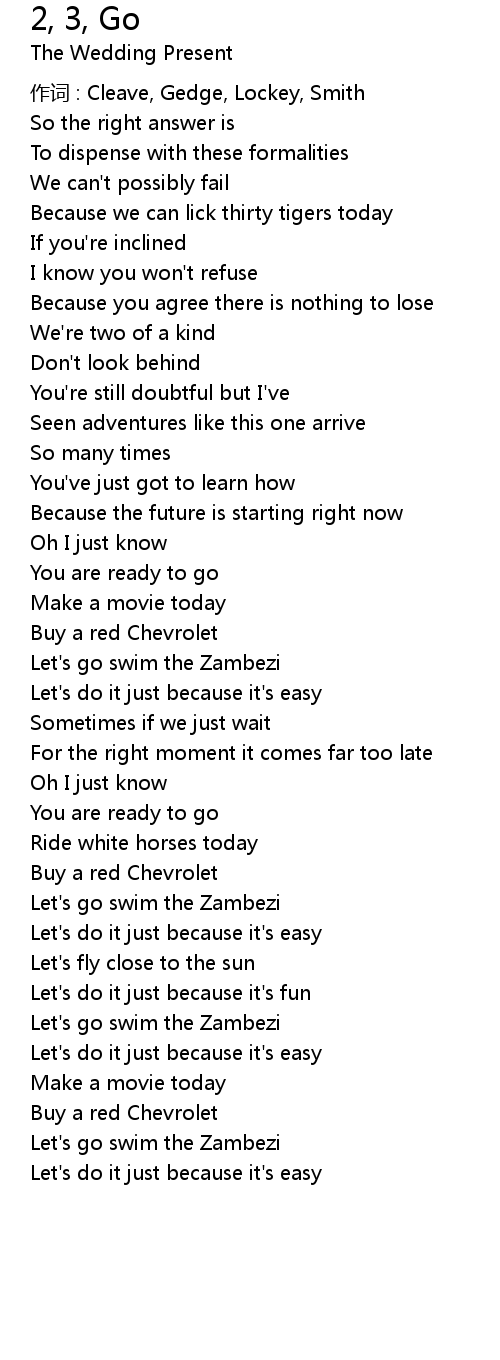 | Song | 2, 3, Go |