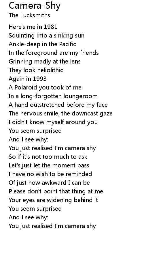 You just realised I'm camera shy |