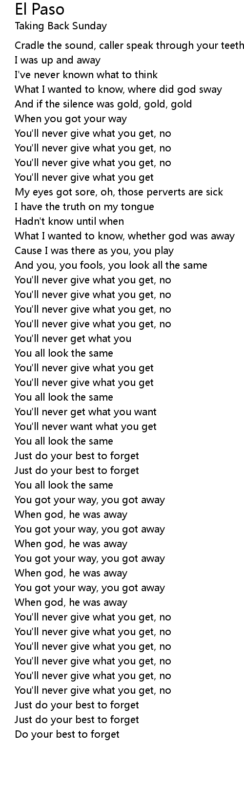 You'll never give what you get, no |