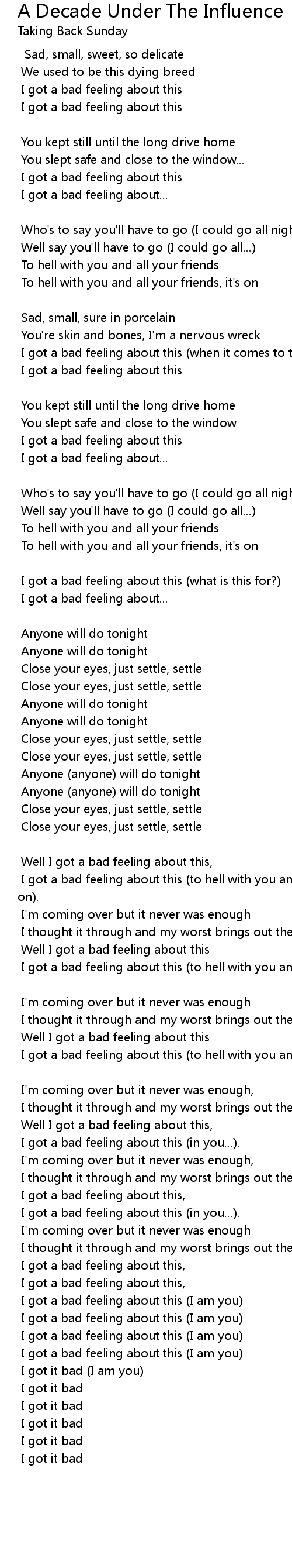 I got a bad feeling about this (to hell with you and all your friends, it's on) |