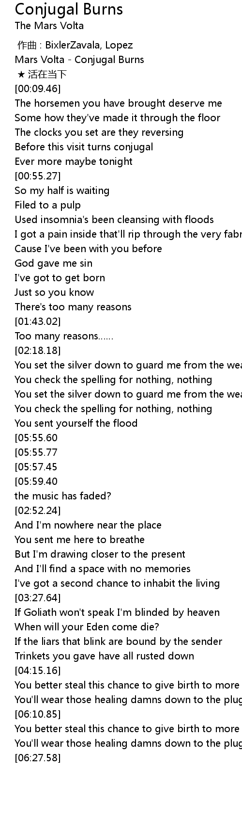 | [00:02.22] | Mars Volta Conjugal Burns |